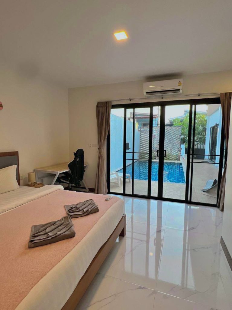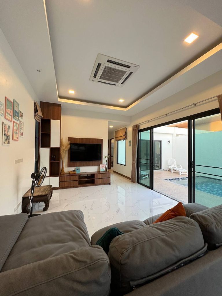 гостиная, укомплектованная кухня, 2 ванные комнаты из каждой спальни, частный бассейн, парковка
